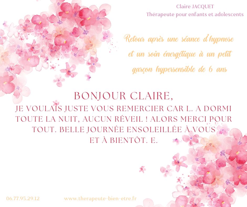 Retour d’une maman suite à de l’hypnose et un soin à son fils de 6 ans